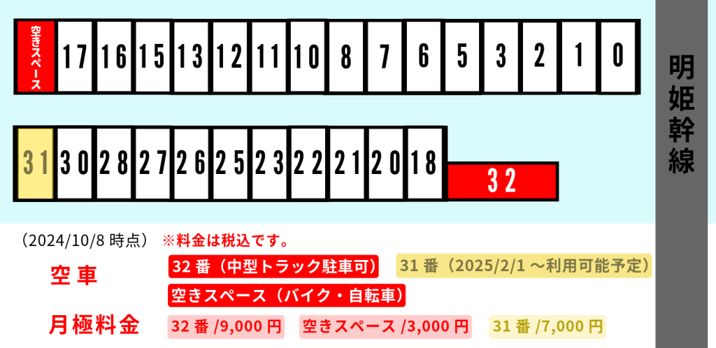●31番/月極料金 税込み7,000円 (2025/2/1~利用可能予定)