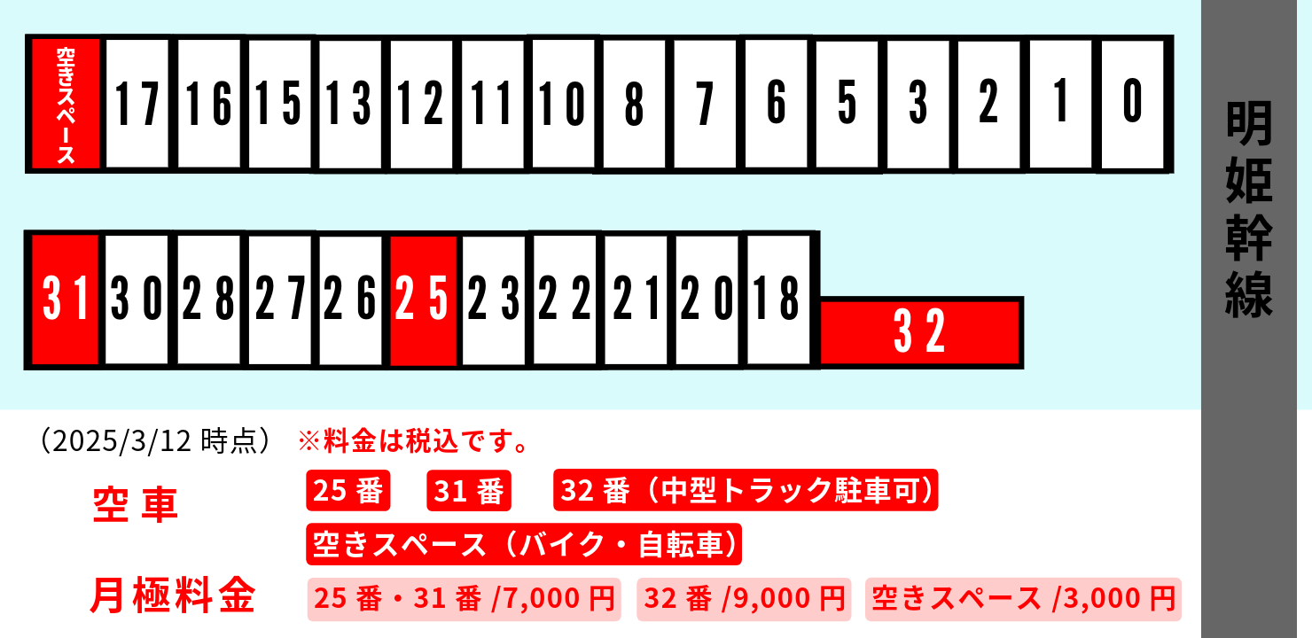 ●32番/月極料金 税込み9,000円 ※中型トラック駐車可能