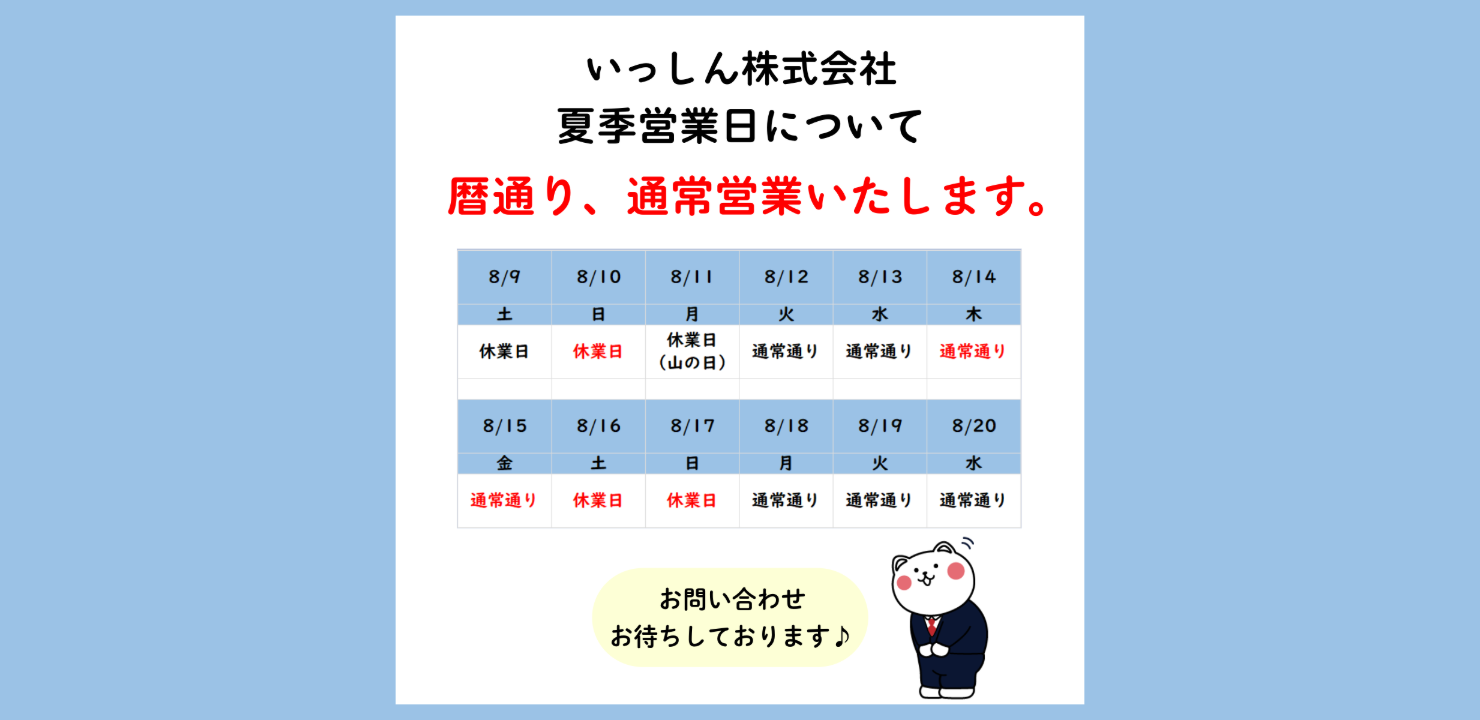 2025/8/7 【夏季営業日について】