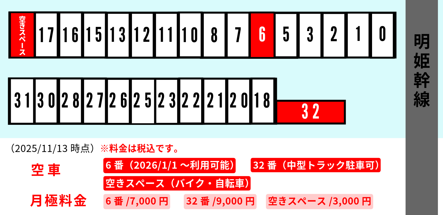 ●6番/月極料金 税込み7,000円 (2026/1/1~利用可能)
