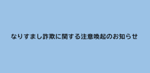 なりすまし詐欺に関する注意喚起のお知らせ 現在、弊社の代表者等を名乗る第三者による、なりすまし詐欺行為が確認されております。弊社から以下のような連絡を行うことはありません。 ・メールやSNSのみでの突然の送金依頼・口座変 […]
